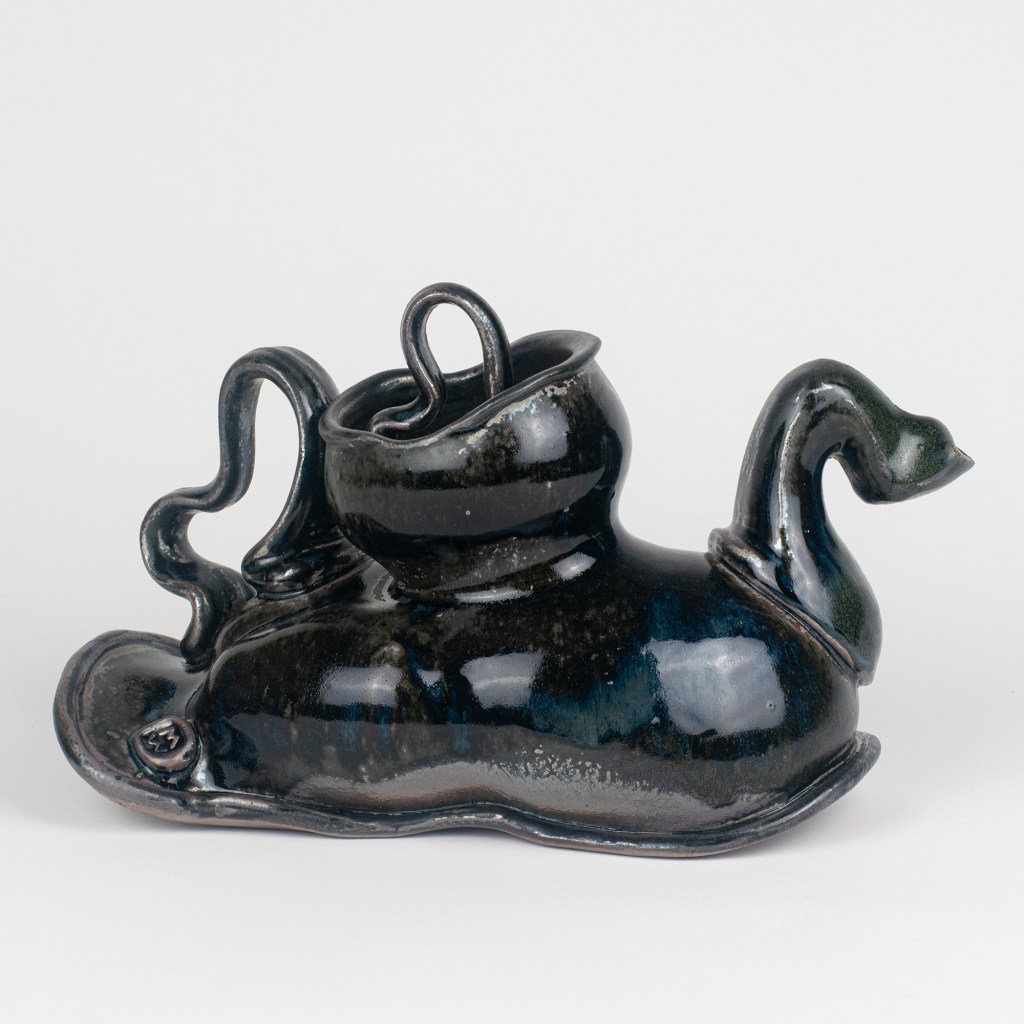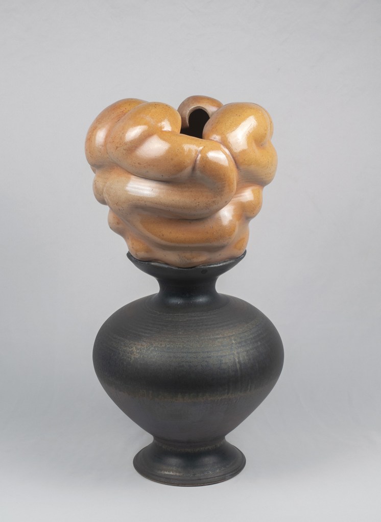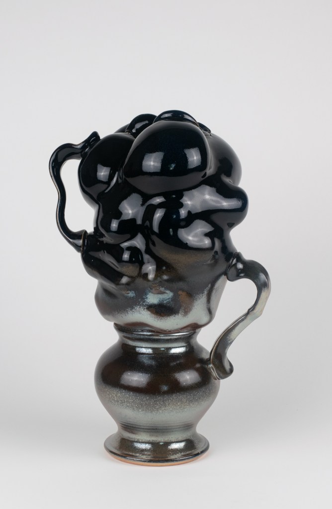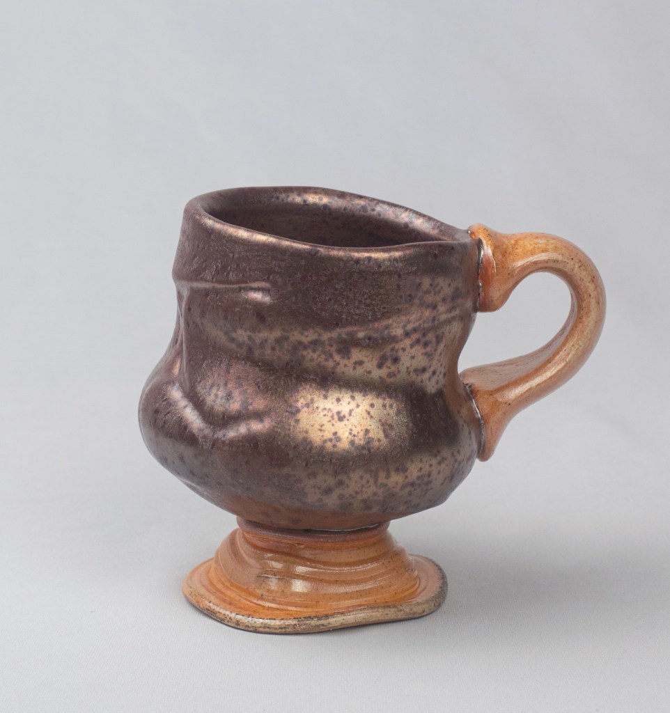 Ceramic, stoneware, soda fired, reduction cooled, shino glaze