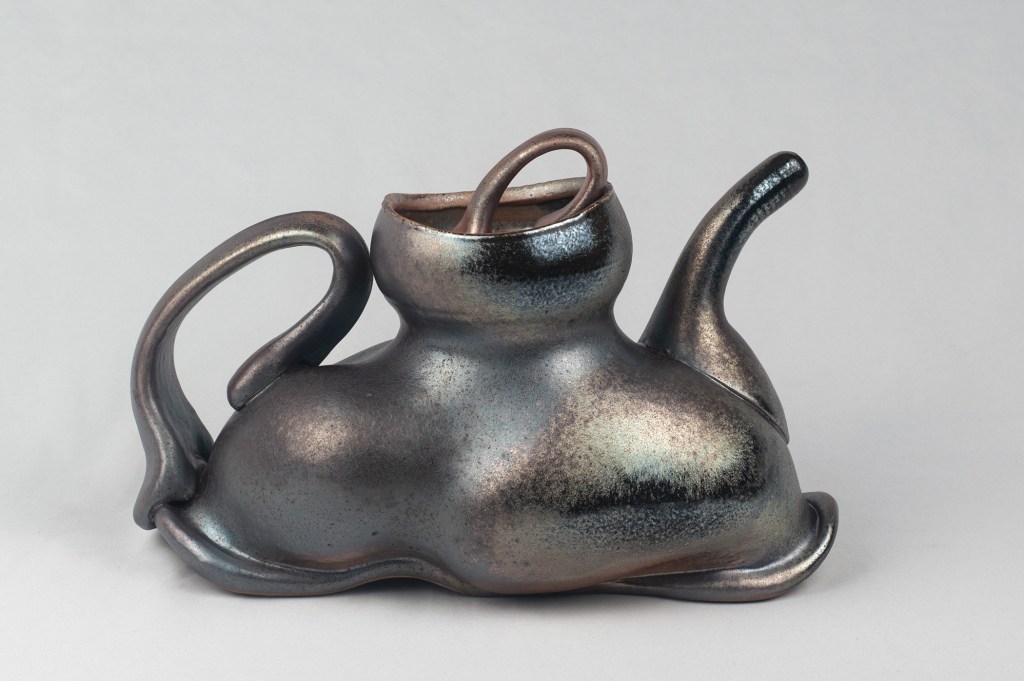 Ceramic, porcelain soda fired, reduction cooled, iron saturate glaze
